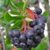 Kompakt wachsender Strauch bis 2 m hoch, feuerrote Herbstfärbung, weißrosa Blüten im Mai/Juni, Früchte klein, leuchtend rot, essbar, zahlreich, sonst wie Wildform.